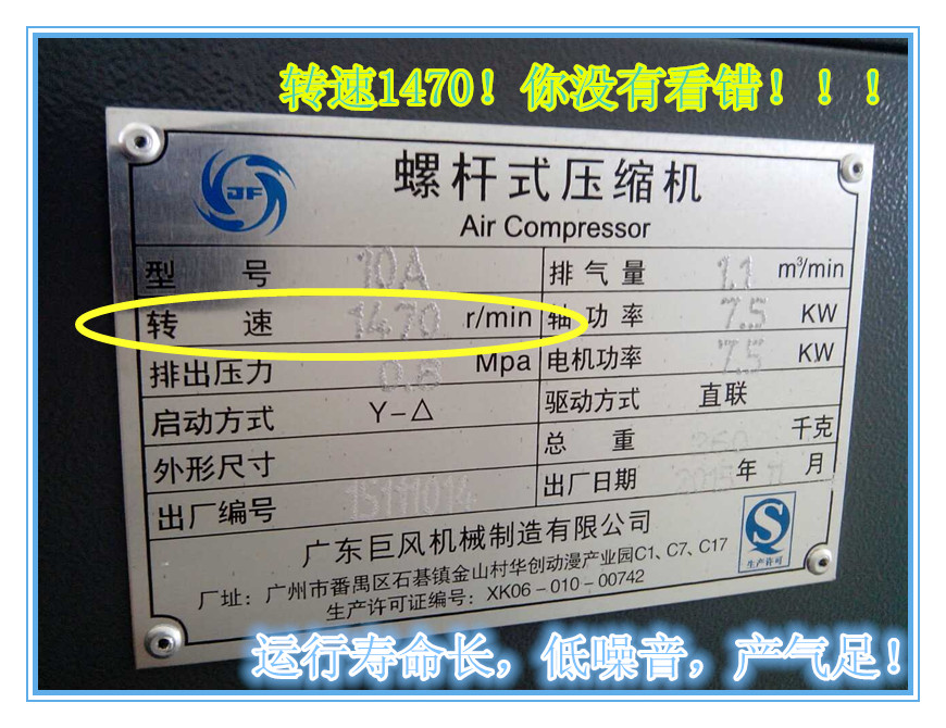 廣東巨風(fēng)10P/7.5KW直聯(lián)螺桿空壓機(jī),是替代活塞機(jī)用戶的福音!