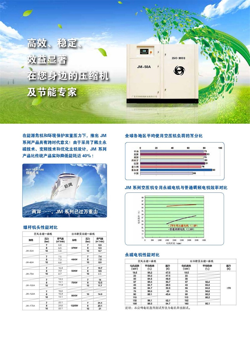 變頻和工頻的區(qū)別顯而易見,永磁變頻空壓機(jī)的節(jié)能優(yōu)勢和效率優(yōu)勢是取勝市場的必要手段。