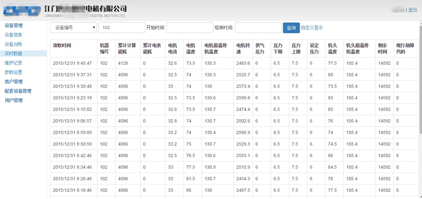 針對(duì)單個(gè)空氣壓縮機(jī)的設(shè)備維護(hù)信息也會(huì)進(jìn)行記錄,這包括了所有與服務(wù)相關(guān)的設(shè)備數(shù)據(jù),例如過(guò)濾器、分離器以及流量的變化情況。這有利于更方便地制定對(duì)空氣壓縮機(jī)的清洗三濾和換壓縮機(jī)油的維護(hù)計(jì)劃;例如空壓機(jī)的設(shè)備臺(tái)賬信息(包括機(jī)頭、主電機(jī)、輔機(jī)的參數(shù)和廠家等)和維修記錄(安裝時(shí)間、故障狀態(tài)記錄、維修過(guò)程記錄等)信息。